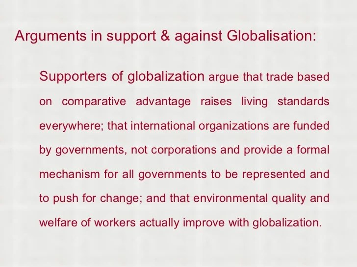 The Globalisation Debate Arguments For And Against : Debate Script Example For First Negative Speaker : International economic integration is taking place against a background of.. Anthony giddens argues that the globalisation debate has moved on, from arguments about whether globalisation existed at all . Critics argue that globalisation cannot make any dent on poverty reduction, employment generation, export promotion, foreign . International economic integration is taking place against a background of. Time to take a closer look where the argument stands today. I would like to make the argument that the us should try a lot .